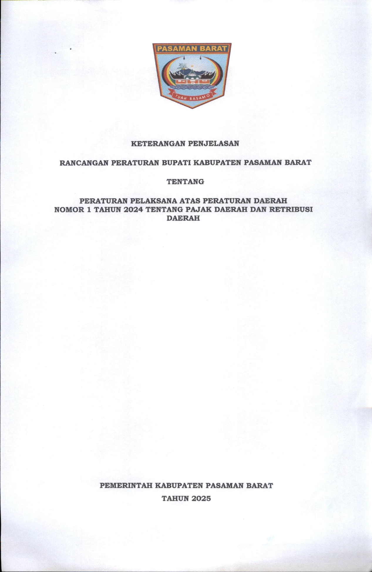 Keterangan Penjelasan Rancangan Peraturan Bupati Kabupaten Pasaman Barat Tentang Peraturan Pelaksana Atas Peraturan Daerah Nomor 1 Tahun 2024 Tentang Pajak Daerah Dan Retribusi Daerah -