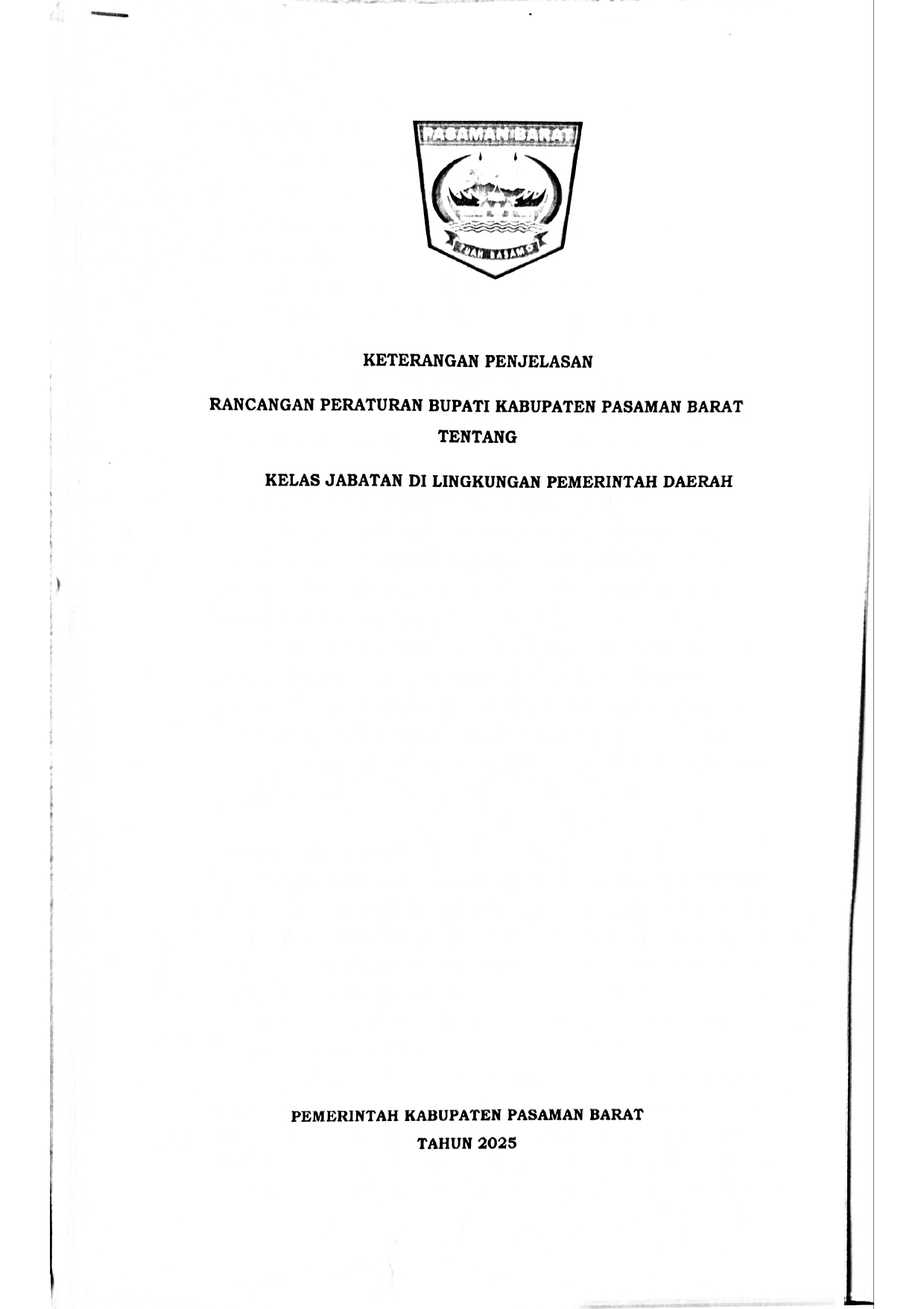 Keterangan Penjelasan Rancangan Peraturan Bupati Kabupaten Pasaman Barat Tentang Kelas Jabatan di Lingkungan Pemerintah Daerah -