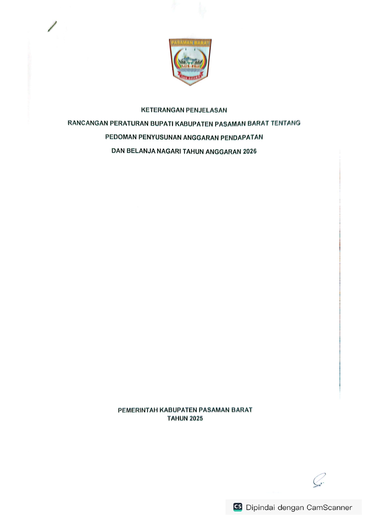 Keterangan Penjelasan Rancangan Peraturan Bupati Kabupaten Pasaman Barat Tentang Pedoman Penyusunan Anggaran Pendapatan Dan Belanja Nagari Tahun Anggaran 2026 -