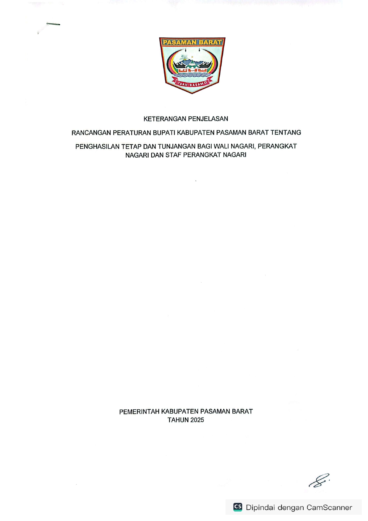 Keterangan Penjelasan Rancangan Peraturan Bupati Kabupaten Pasaman Barat tentang Penghasilan Tetap dan Tunjangan Bagi Wali Nagari, Perangkat Nagari dan Staf Perangkat Nagari -