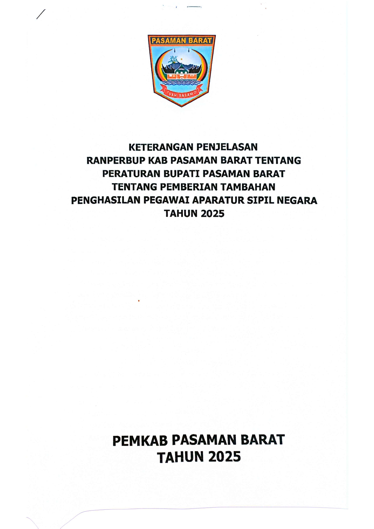 Keterangan Penjelasan Rancangan Peraturan Bupati Pasaman Barat tentang Pemberian Tambahan Penghasilan Pegawai Aparatur Sipil Negara Tahun 2025 -