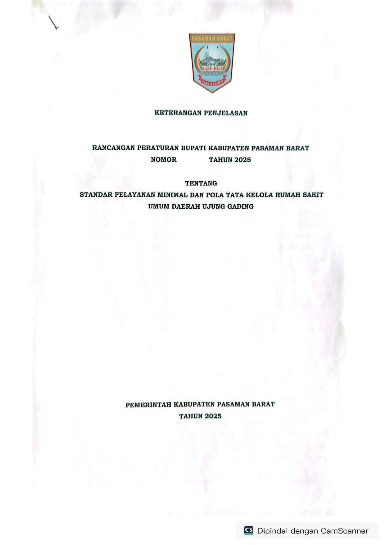 Keterangan Penjelasan Rancangan Peraturan Bupati Kabupaten Pasaman Barat Tentang Standar Pelayanan Minimal dan Pola Tata Kelola Rumah Sakit Umum Daerah Ujung Gading -