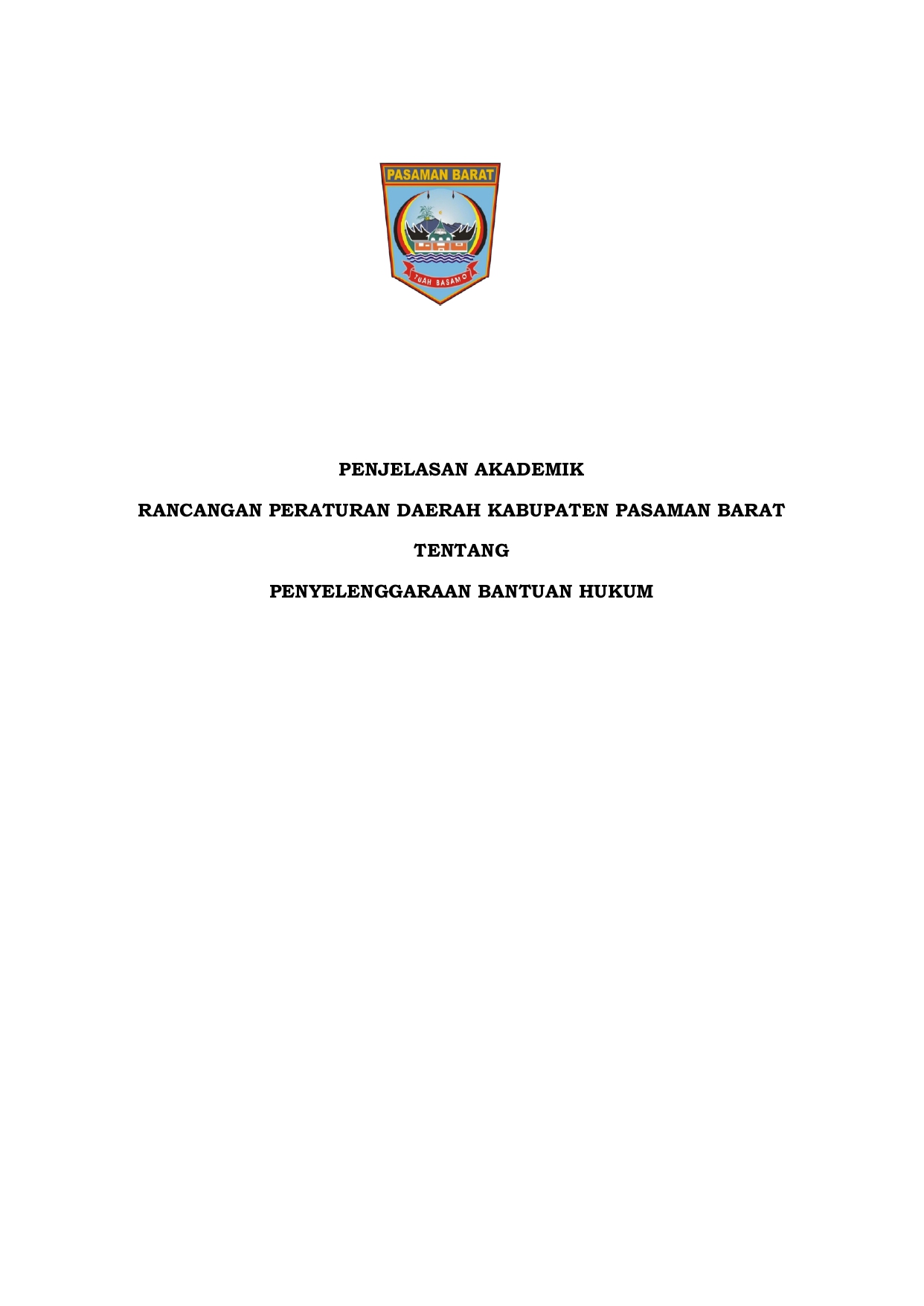 Penjelasan Akademik Rancangan Peraturan Daerah Kabupaten Pasaman Barat Tentang Penyelenggaraan Bantuan Hukum -